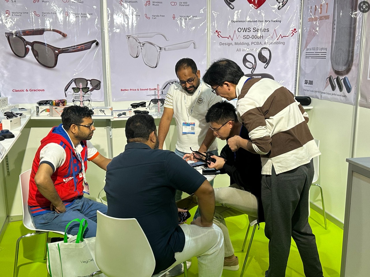 フェアでは、当社の最新スタイルのスマート カメラ メガネ、オーディオ メガネ、ワイヤレス ヘッドフォン、心拍数追跡イヤフォン、およびゲーム用ヘッドフォンやスポーティなメガネなどの 2026 年に発売予定のアイテムを展示しました。